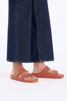 Modelled on the cork original, this sandal is made from ultra lightweight and highly flexible EVA. These colourful sandals are shock-absorbent, waterproof, and skin-friendly. Wear them at the beach, in the garden, or in wellness and spa areas. It's the perfect addition to your classic Birkenstock sandals.