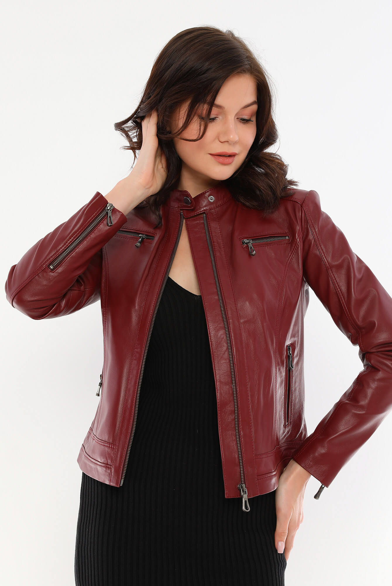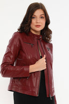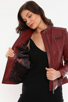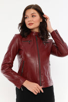 Bonnie Maroon Leather Jacket Women Jeyka