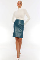 Mid Blue Leather Skirt Women