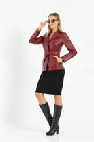 Esta Brick Color Leather Jacket