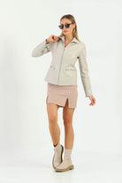 Fiona Beige Leather Jacket Women