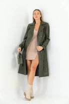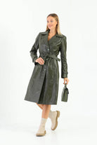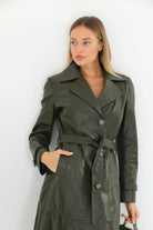 Tracy Khaki Green Leather Trench Coat Women