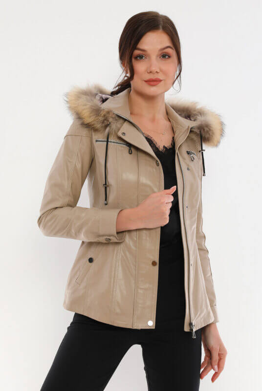 Veronica Beige Leather Jacket Women Jeyka