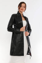 Alexa Black Leather Trench Coat Women Jeyka