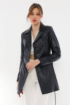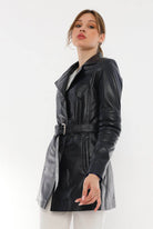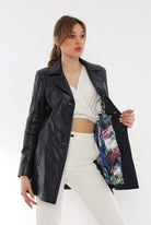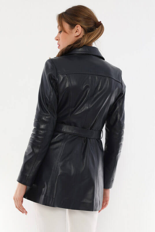Jessica Navy Blue Leather Trench Coat Women Jeyka