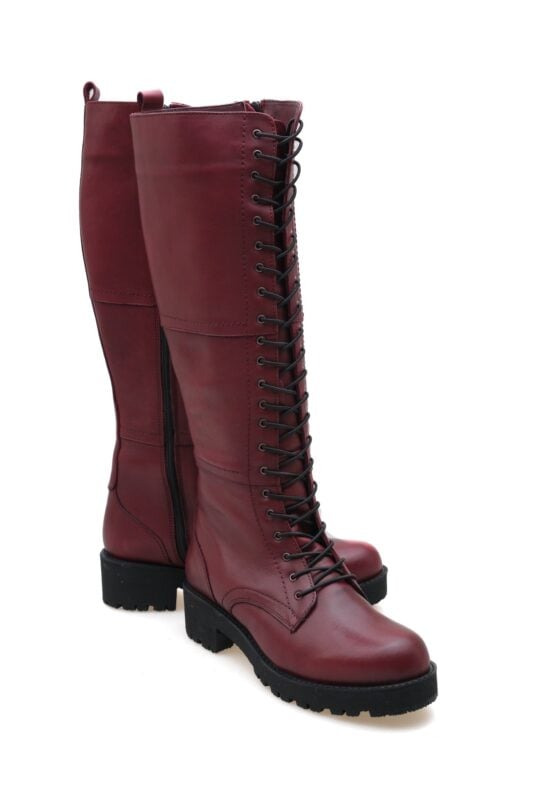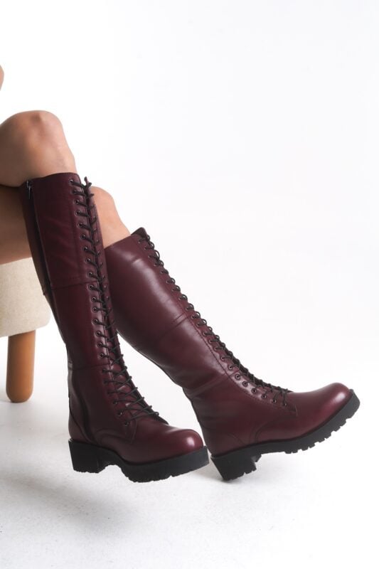 Elisa Genuine Knee High Leather Maroon Boots