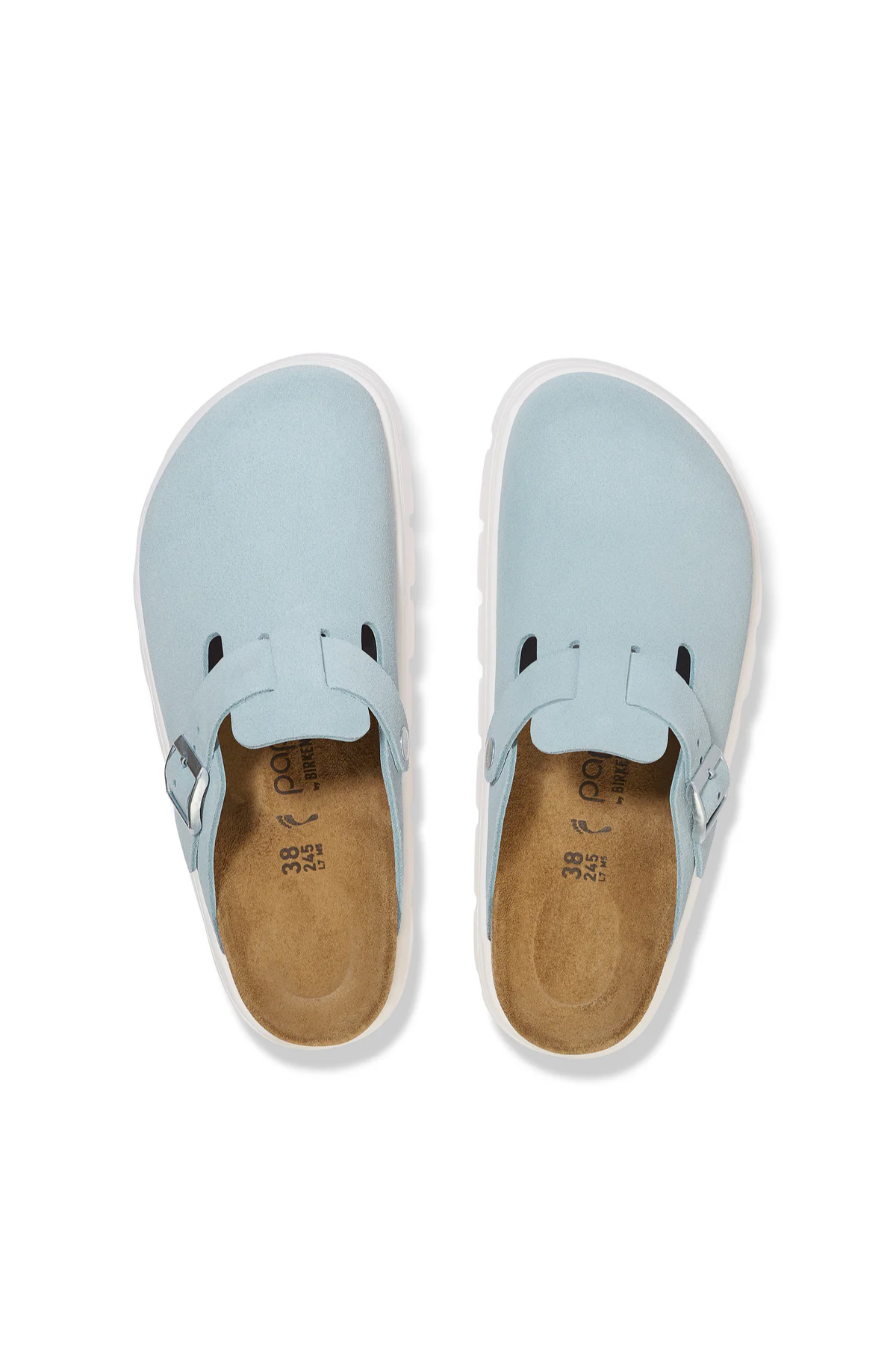 Boston Chunky Baby Blue Suede Leather Narrow