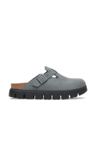 The Boston clog is a veritable classic that can easily be worn all year round. A chunky platform sole takes the clog's iconic design to new heights. Built on contoured footbed, the statement tread stands out below the classic suede upper.