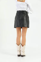 Lona Black Leather Skirt Women