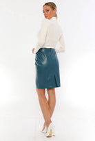 Mid Blue Leather Skirt Women