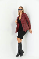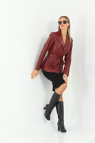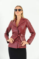 Esta Brick Color Leather Jacket