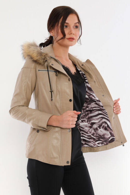 Veronica Beige Leather Jacket Women Jeyka