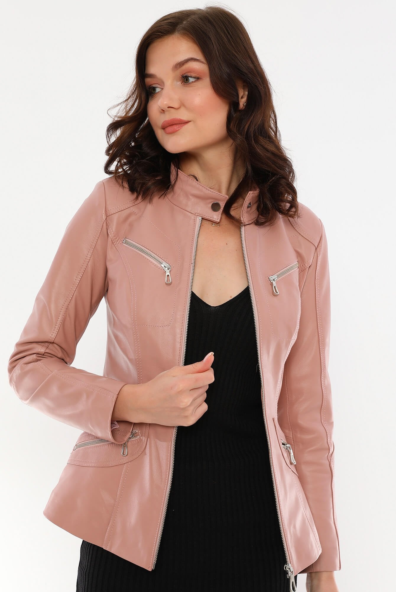 Sonia Blush Leather Jacket Women Jeyka