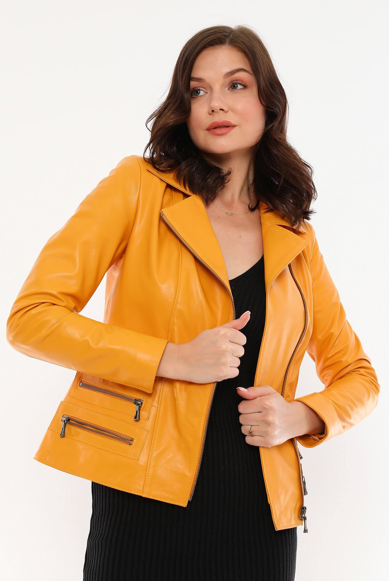 Rina Yellow Leather Jacket Women Jeyka