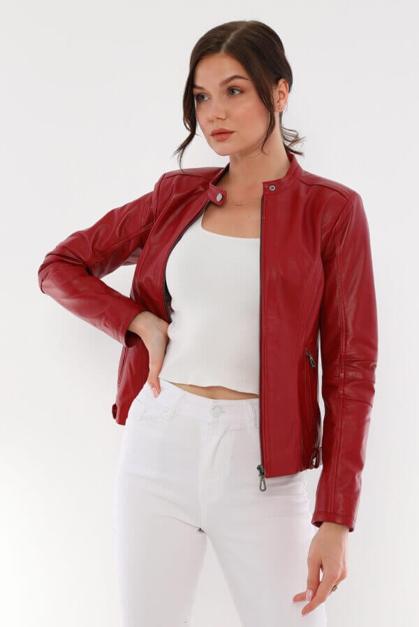 Malibuna Red Leather Jacket Women Jeyka