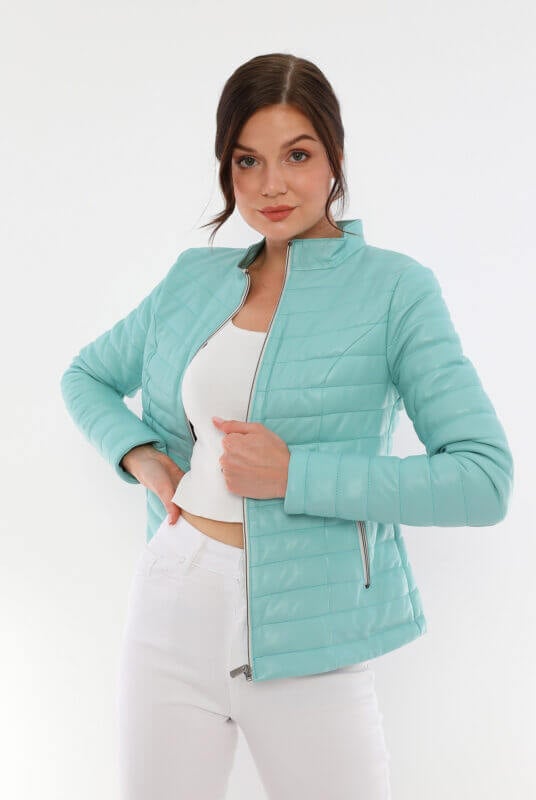 Clara Puffer Mint Leather Jacket Women Jeyka