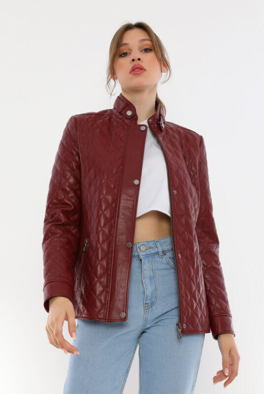 Bonnie Maroon Leather Jacket Women Jeyka