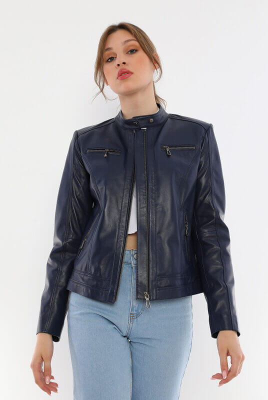 Kiely Navy Blue Leather Jacket Women Jeyka