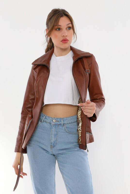 Azra Brown Leather Jacket Women Jeyka