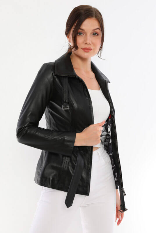 Donna Black Leather Jacket Women Jeyka