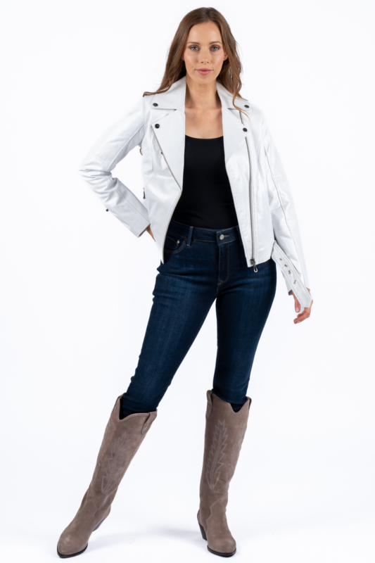 Stefania White Leather Jacket Women Jeyka