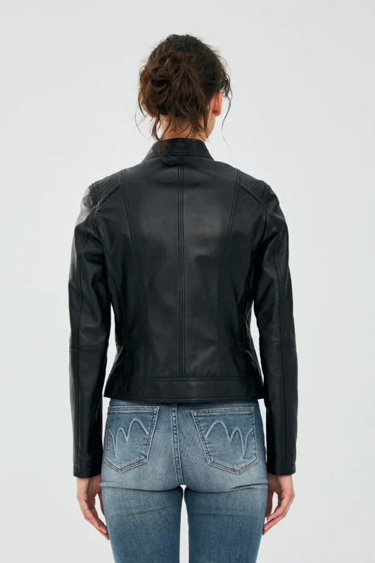 Gina Black Leather Jacket Women Jeyka