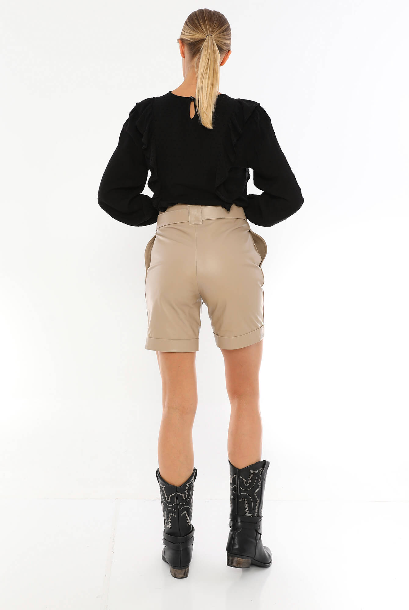 About The Norma Beige Leather Shorts;