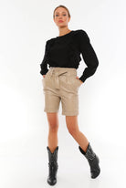 Norma Beige Leather Shorts Women