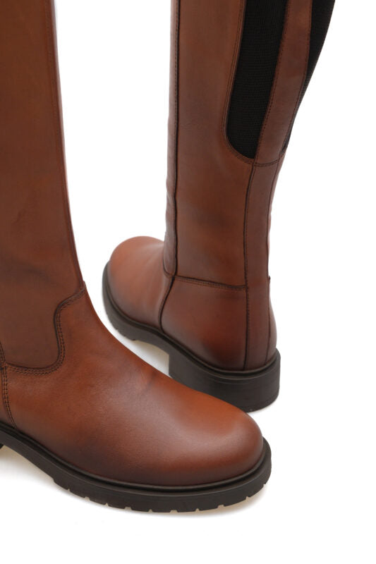 Miretta Genuine Knee High Leather Tan Boots
