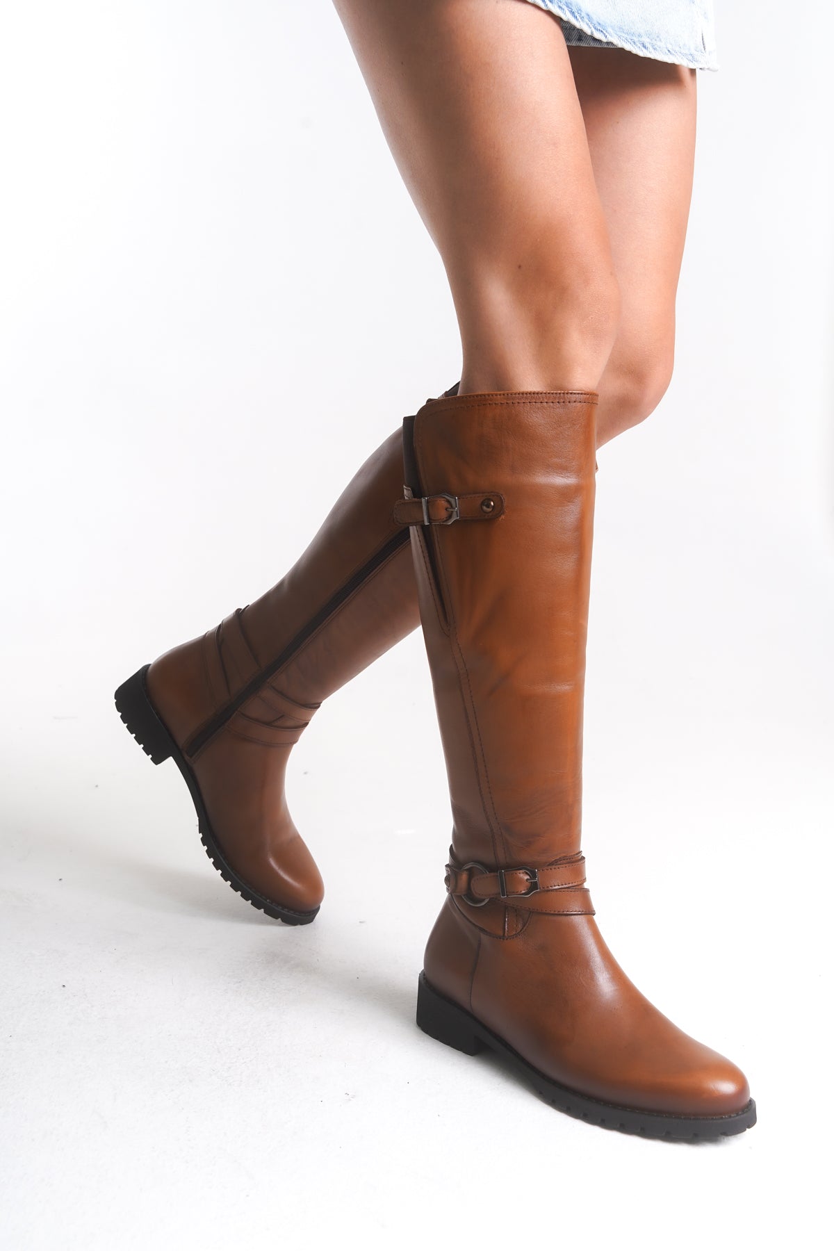 The Vinalia Genuine Leather Knee-High Boots are designed for women who value both elegance and practicality, offering a timeless knee-high silhouette with refined buckle details, a side zip for effortless wear, and a durable non-slip sole that ensures comfort and confidence from day to night—making them the perfect choice for work, casual outings, or elevated evening looks.