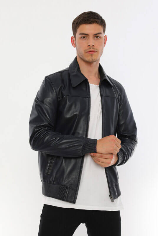 Daniel Navy Blue Leather Jacket Men Jeyka