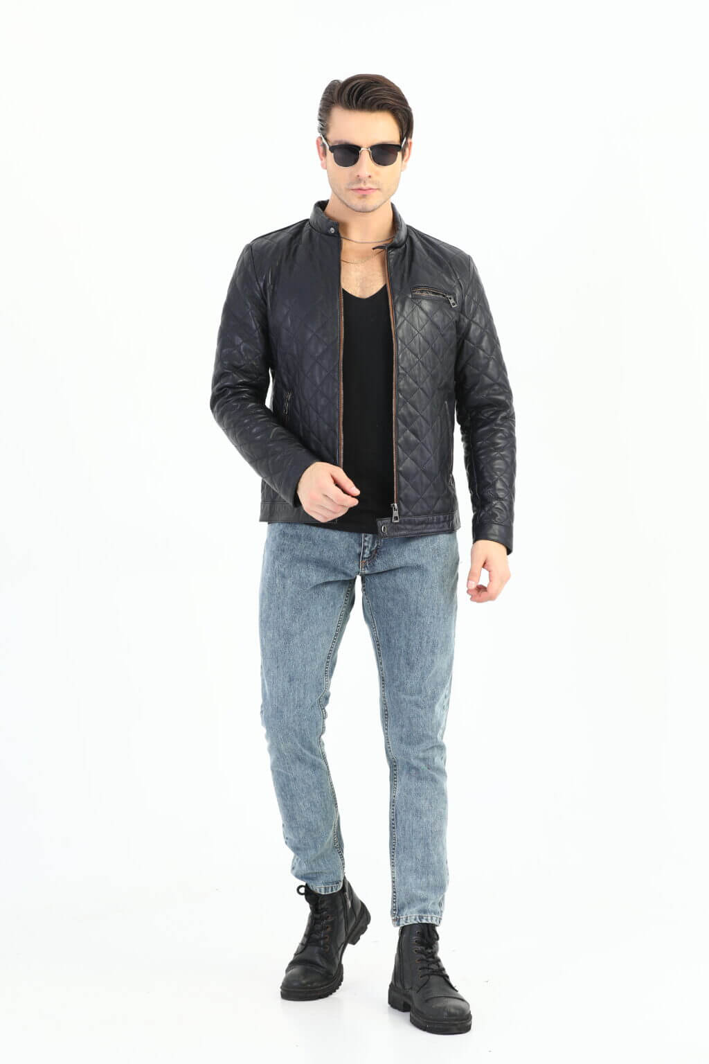 Leonardo Navy Blue Leather Jacket Men Jeyka