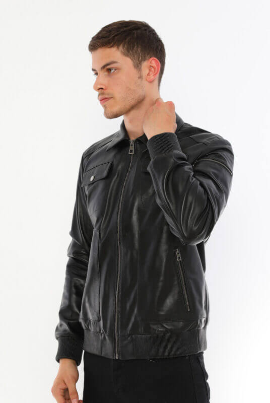 Thomas Black Leather Jacket Men Jeyka