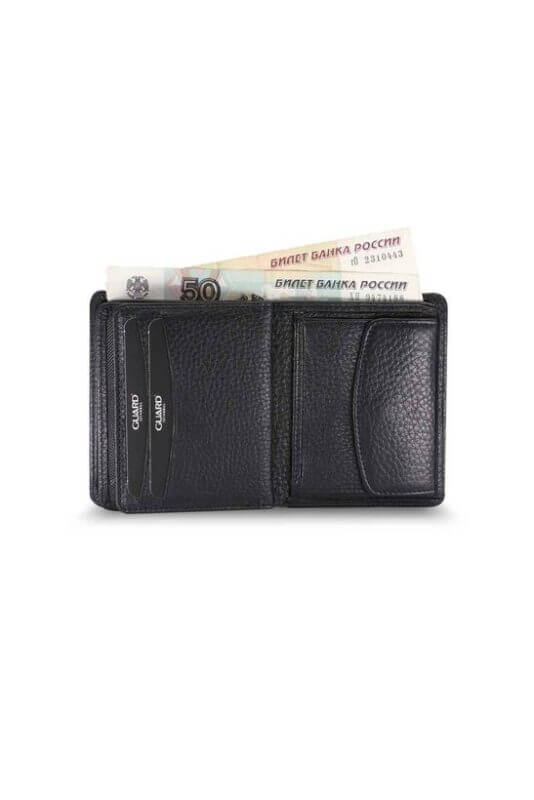 In the main section, there are 7 card holders, 2 transparent ID / driver’s license sections, 1 coin section and 2 paper money sections.