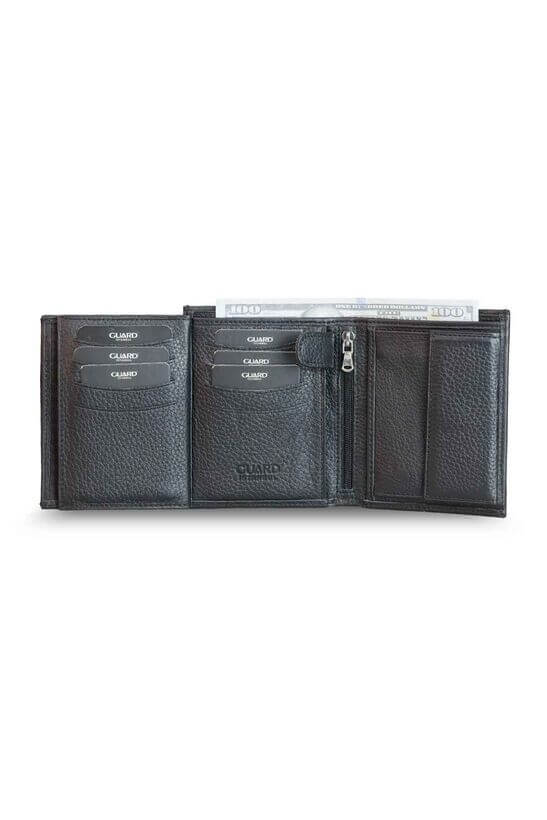 Jeyka Multi-Compartment Vertical Black Leather Men’s Wallet
