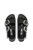 The Birkenstock Milano: Maximum grip, stability, and a perfect fit. The Big Buckle version features large, statement pin buckle closures. Oiled leather uppers put a distinctly heritage spin on the ever popular Milano sandal, while the semi-exquisite footbed lined with soft piumato leather makes it exceptionally comfortable.