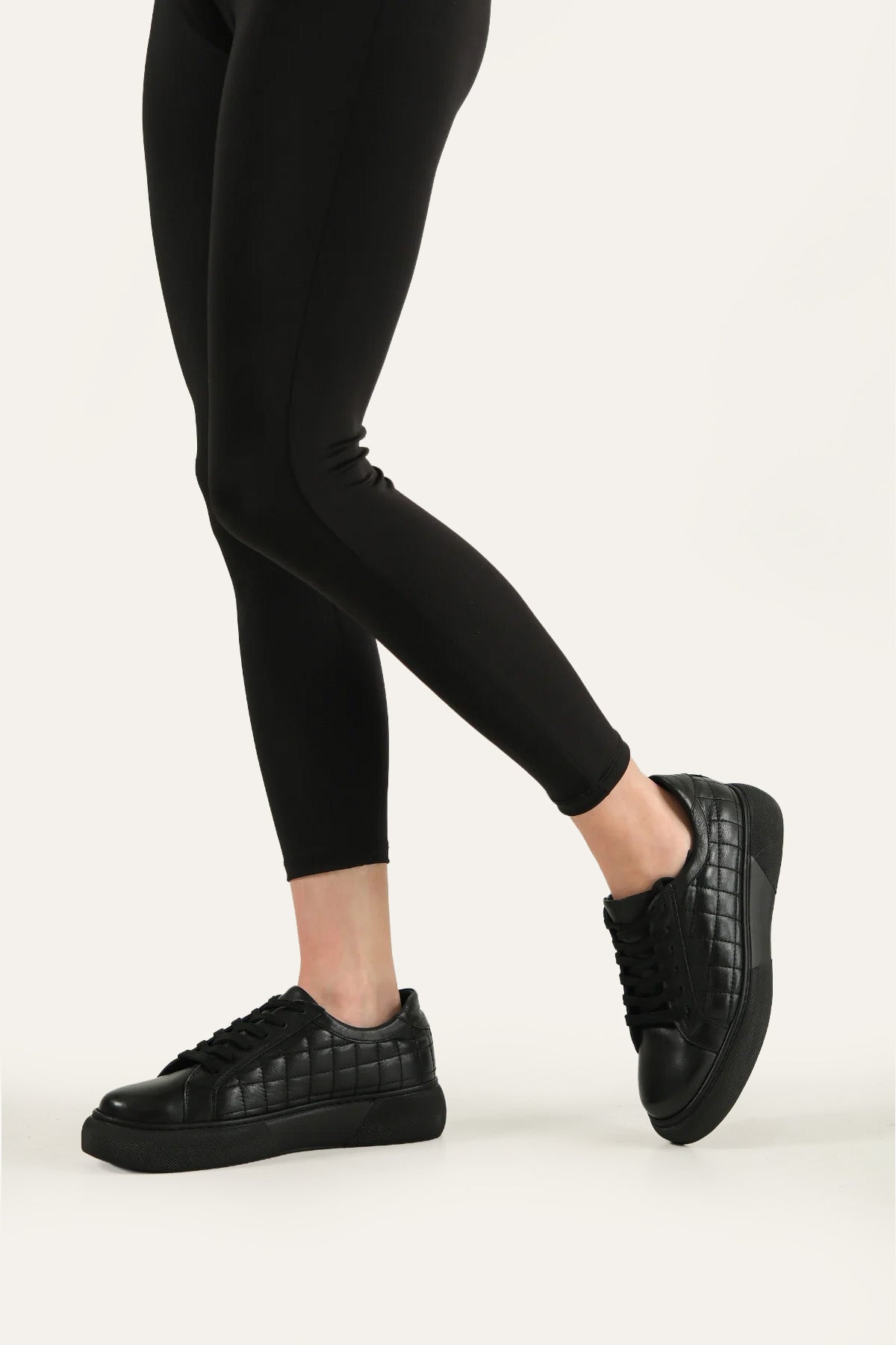 Cecilia Genuine Leather Women Sneakers Black