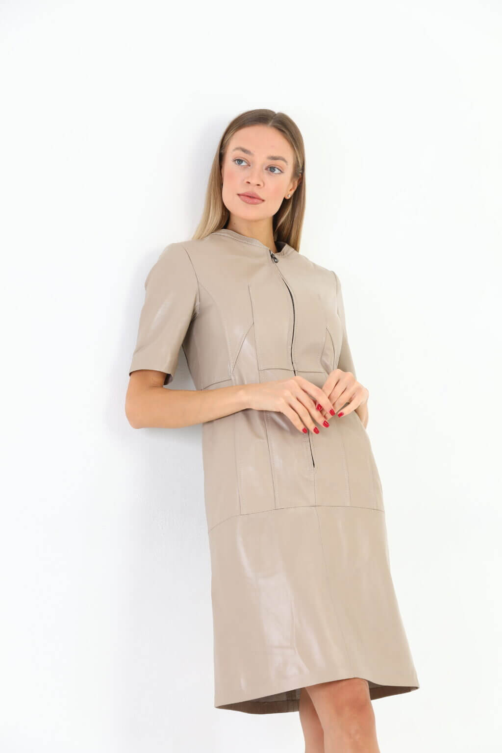 Addison Beige Leather Dress