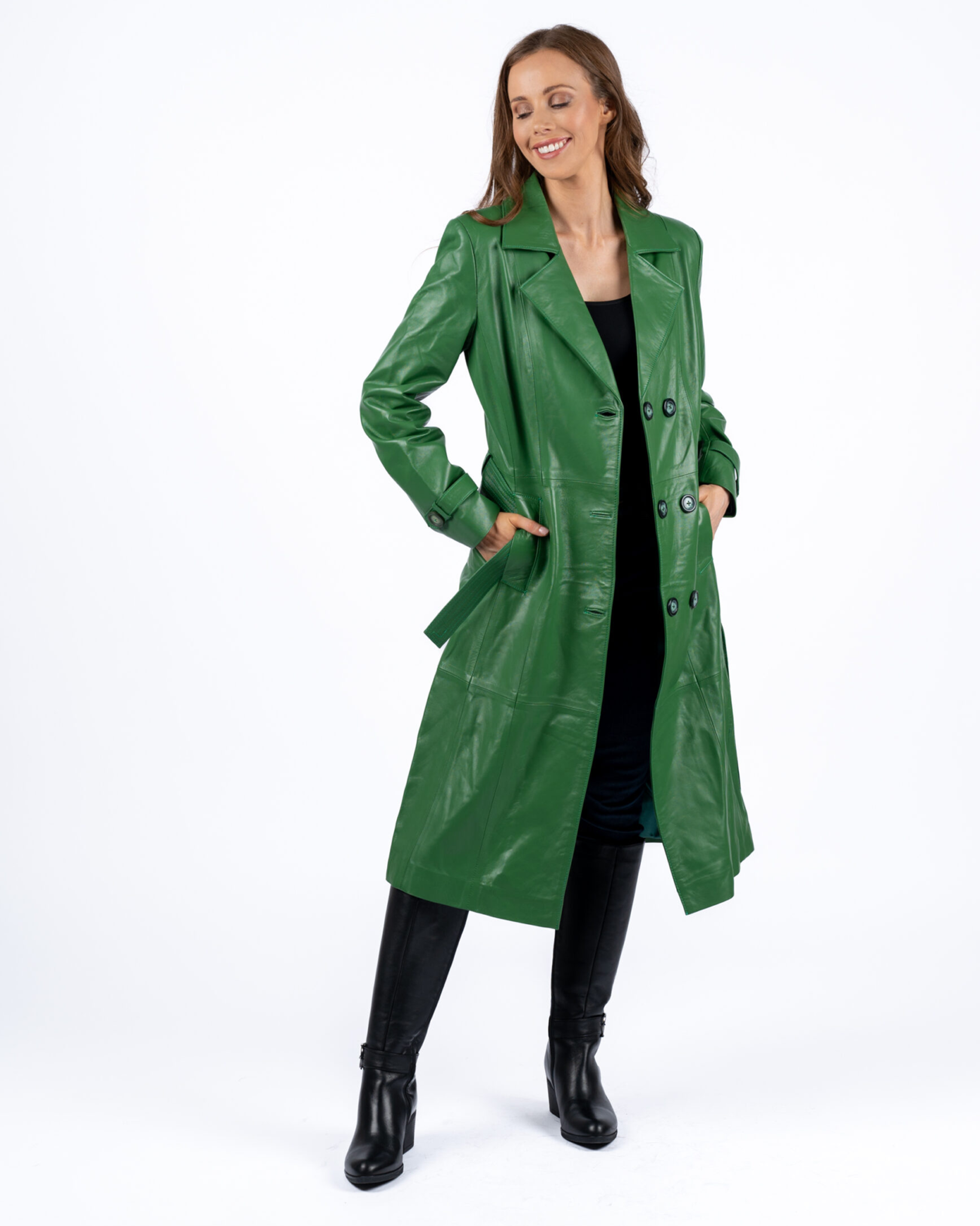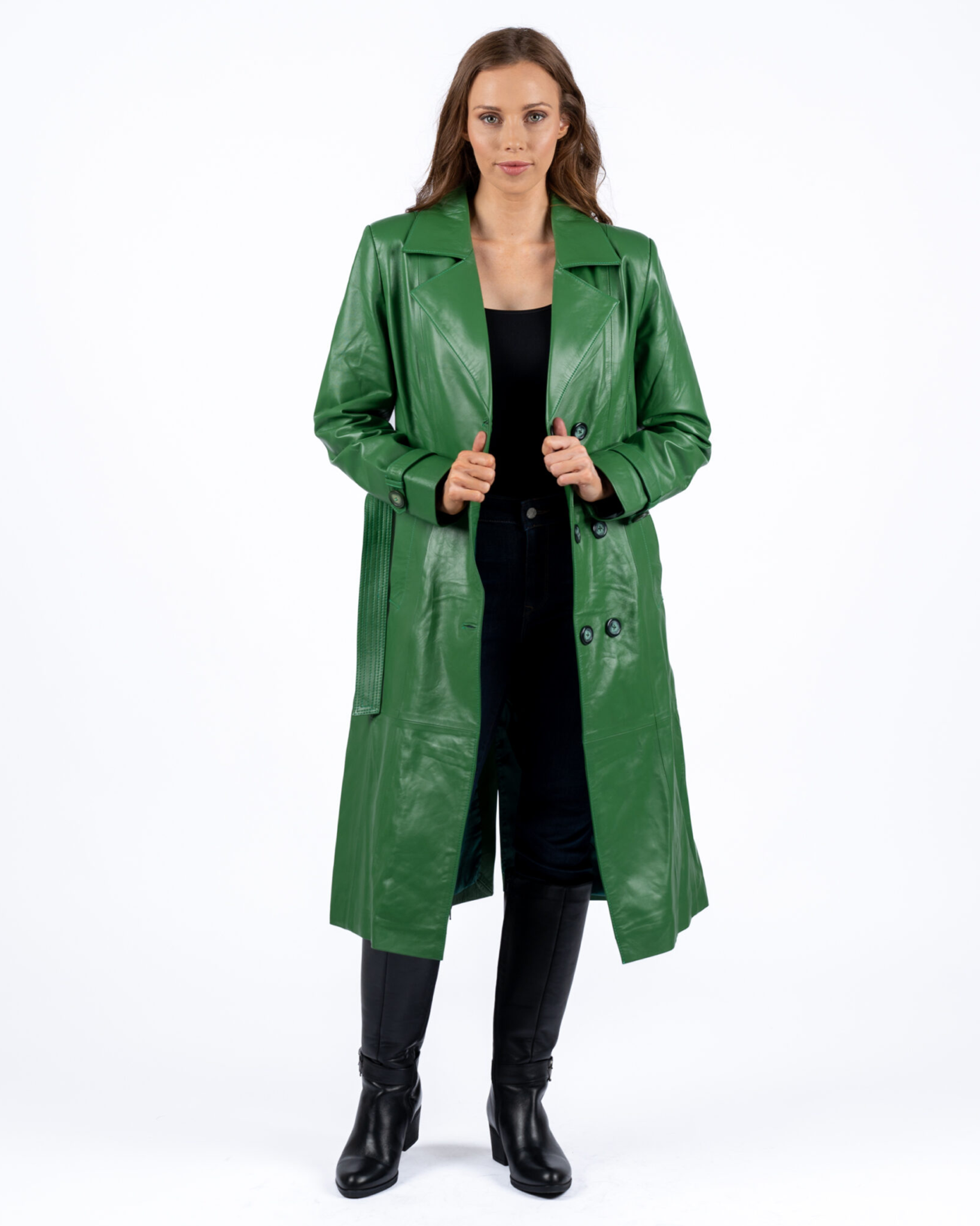 Agatha Green Leather Trench Coat Women