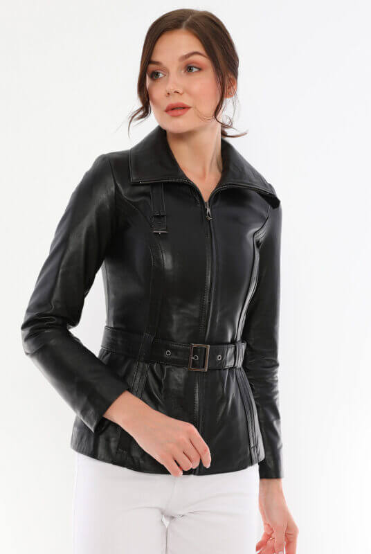 Azra Black Leather Jacket Women Jeyka
