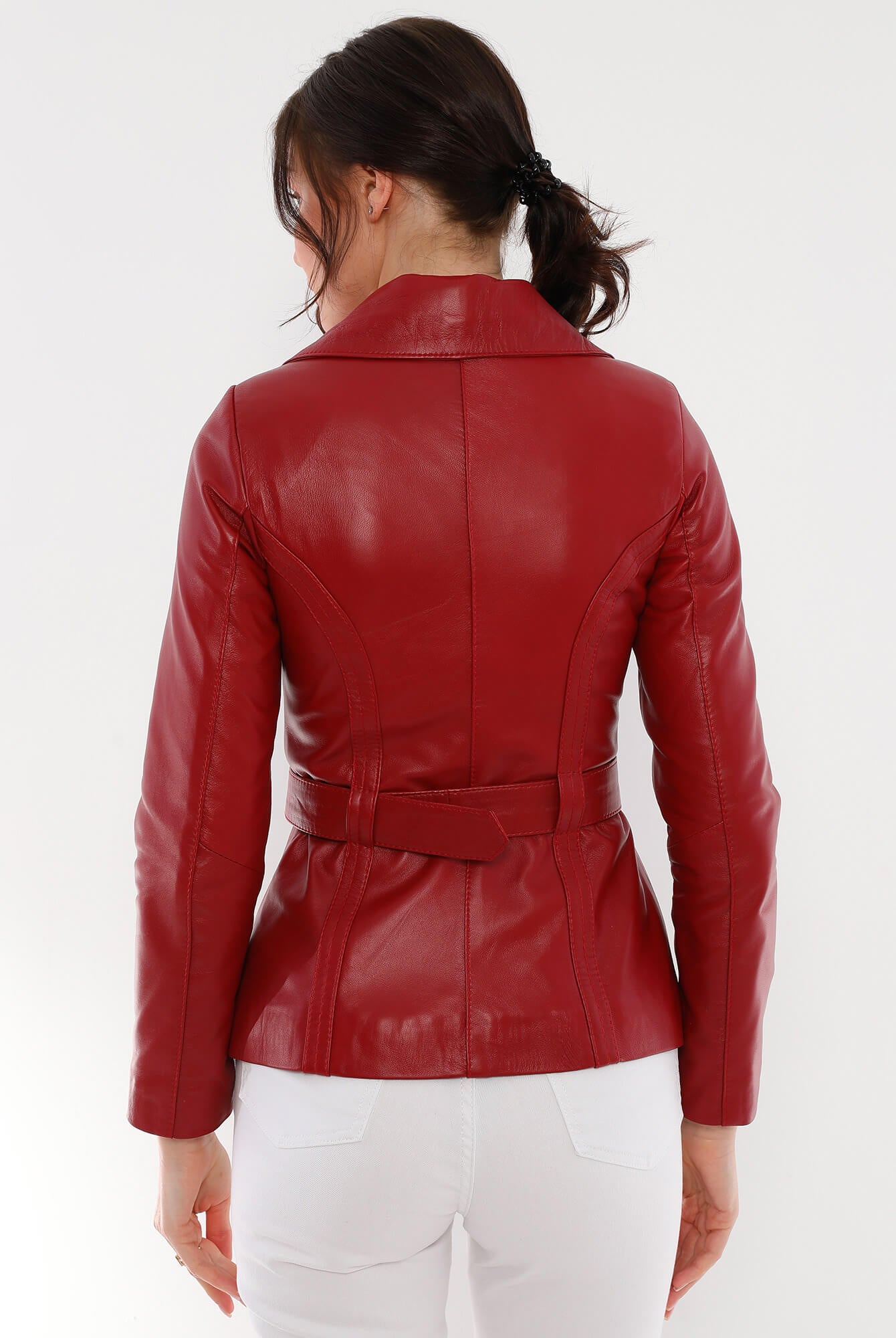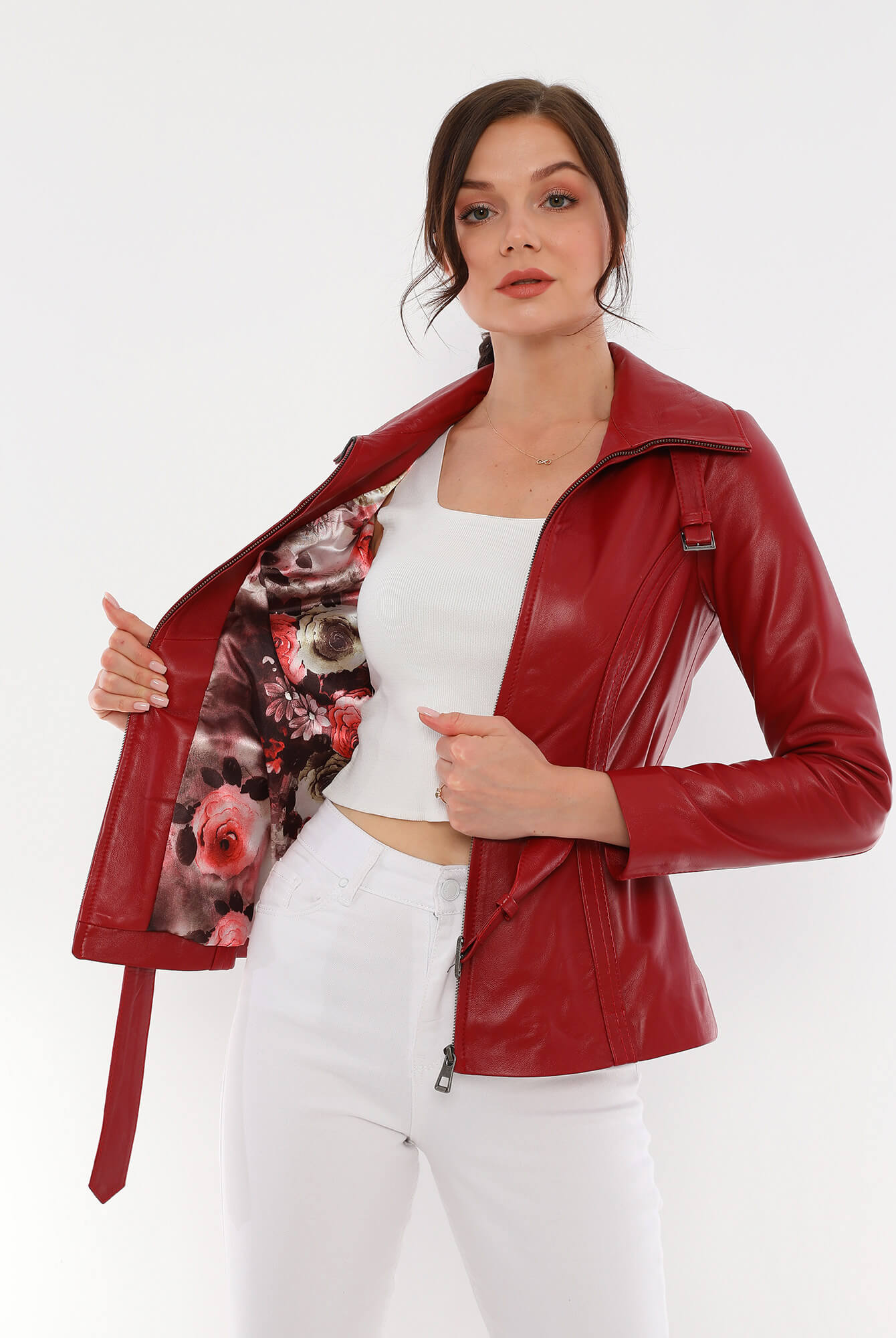 Azra Red Leather Jacket Women Jeyka