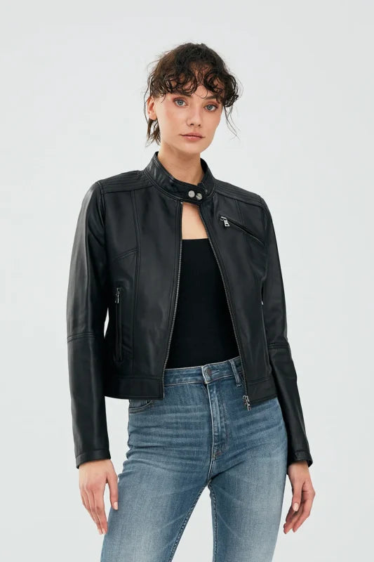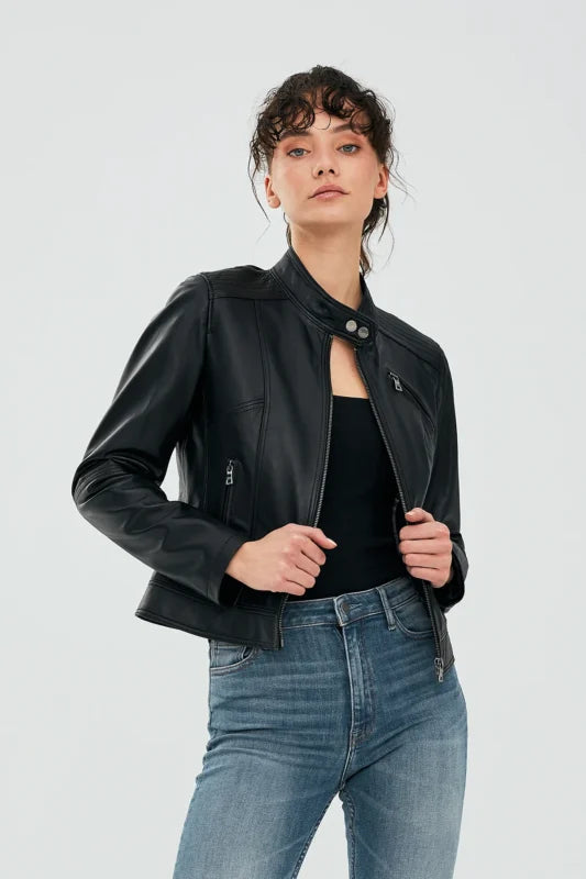 Kiely Black Leather Jacket Women Jeyka