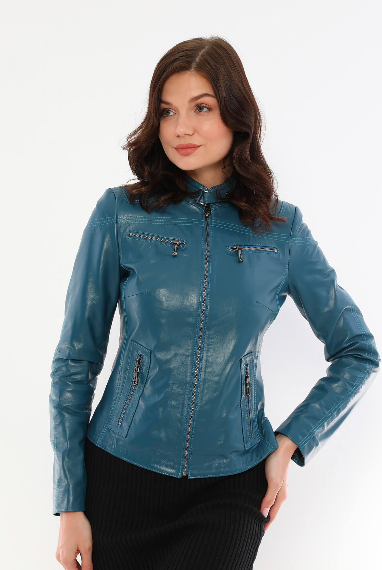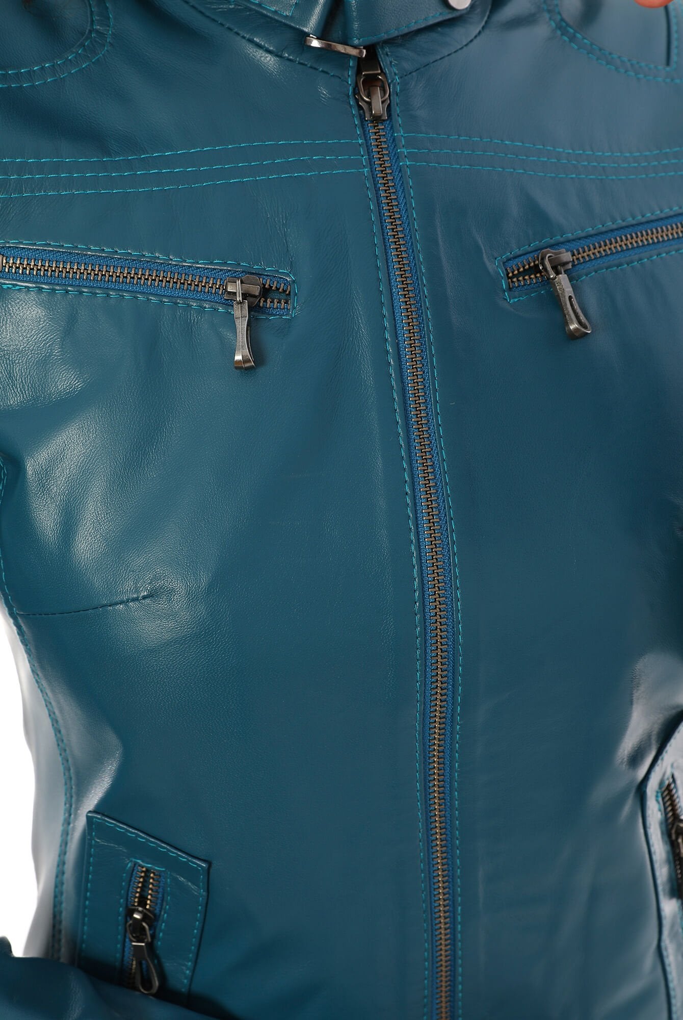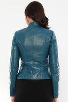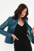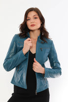 Nita Blue Leather Jacket Women Jeyka