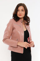Nita Blush Leather Jacket Women Jeyka