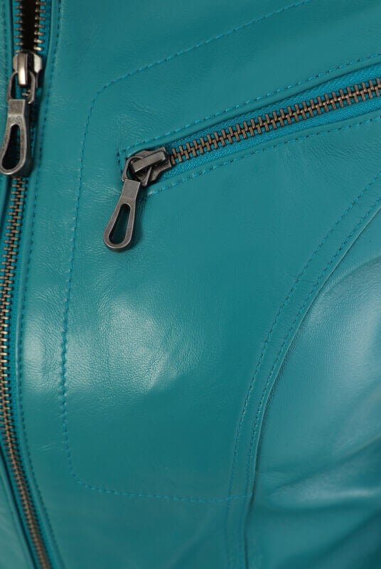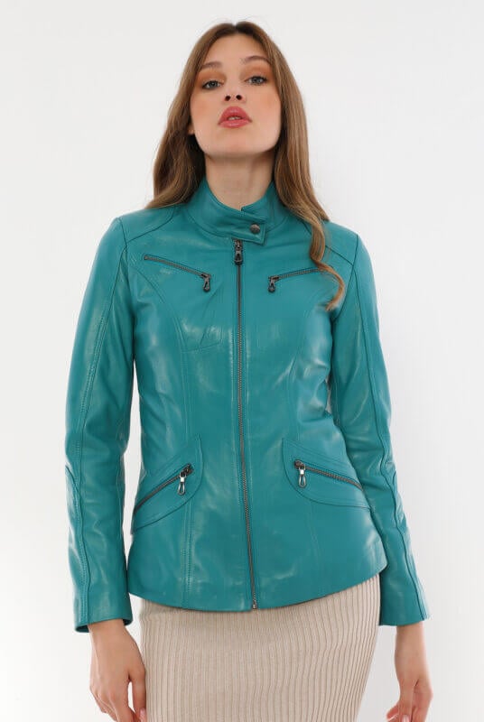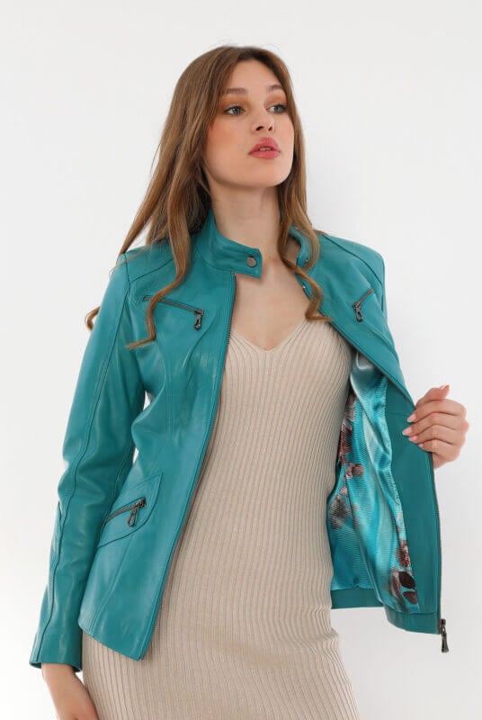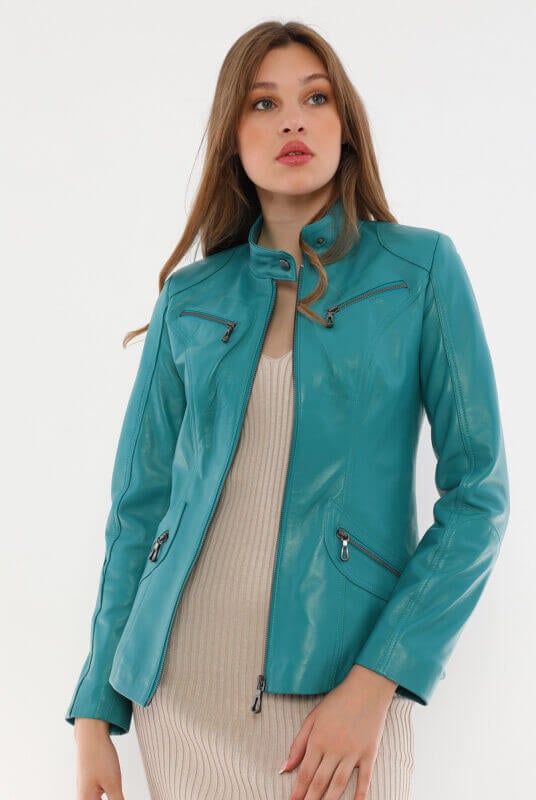 Sonia Turquoise Leather Jacket Women Jeyka